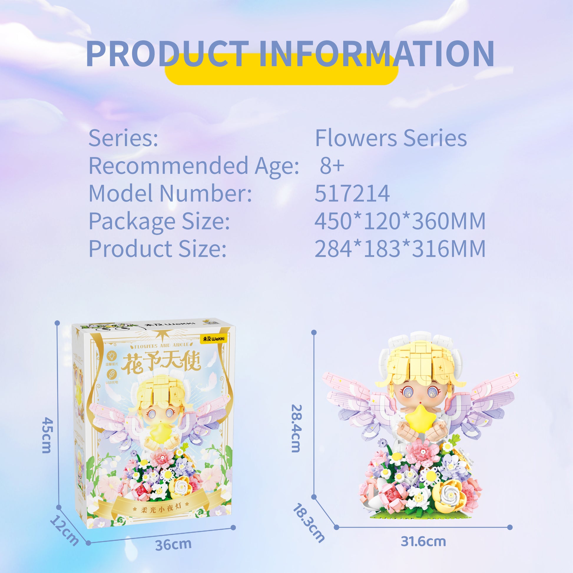 Angel Night Light Building Blocks Kit – USB Rechargeable LED Star Lamp with Flowers, Creative Home Decor & Romantic Gift for Kids & Adults
