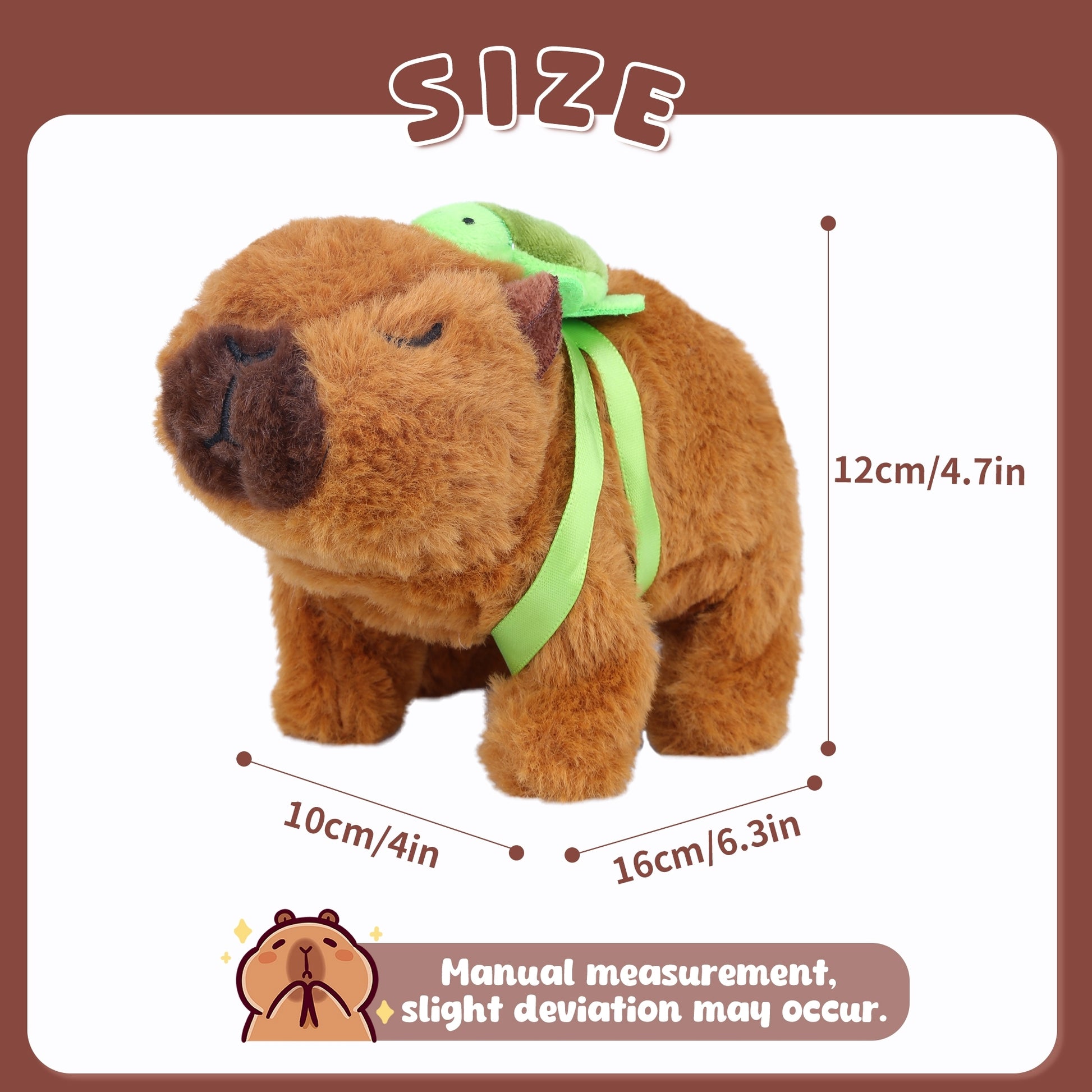 Discover the magic of our Brown Walking Capybara Plush Toy – a lovable companion that combines playful interaction with cozy comfort. This 6.3-inch plush capybara doesn’t just sit still; it walks, hops, wags, and makes cheerful sounds, all while carrying a removable green turtle backpack for extra charm and imaginative role-play.