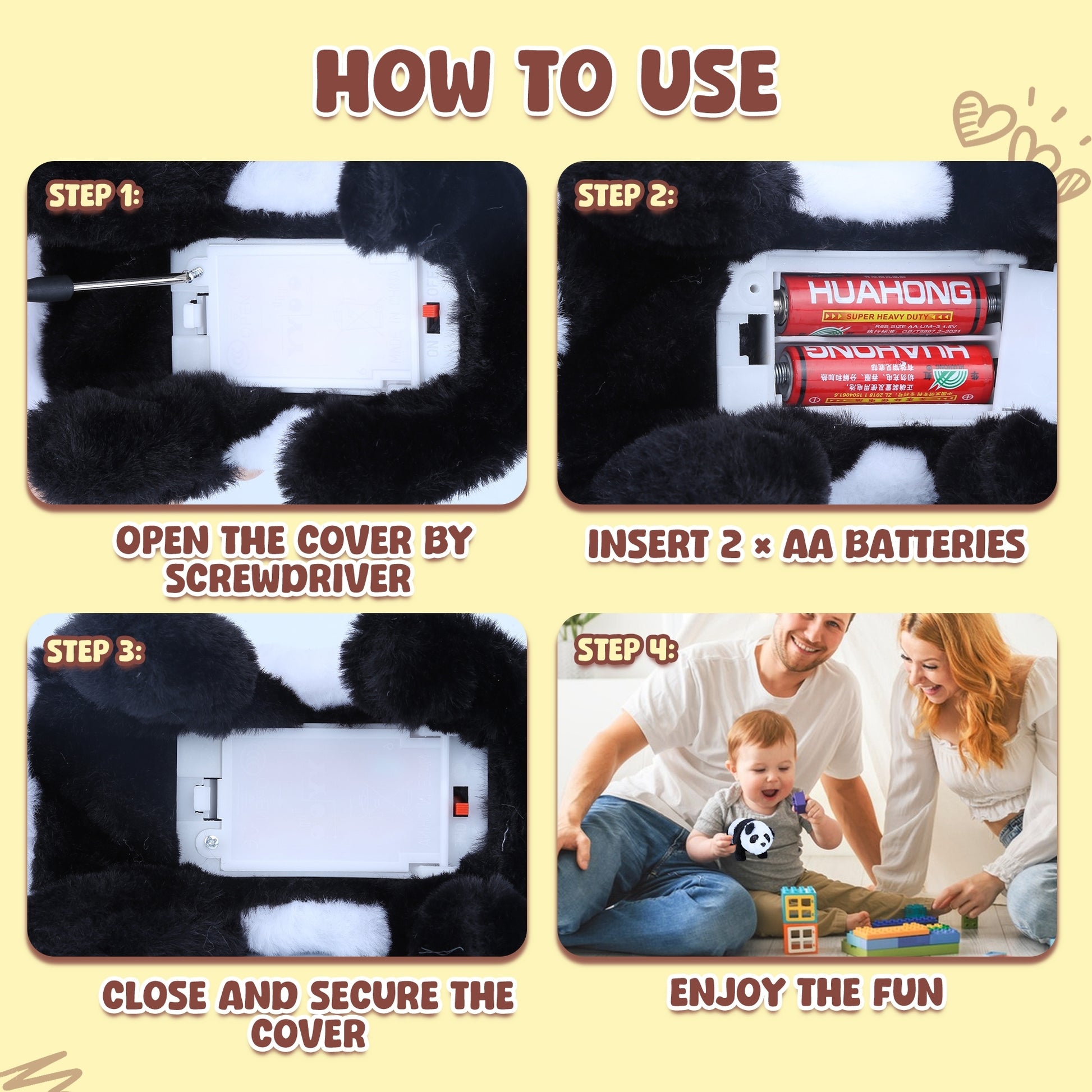 β Easy Battery Operation β Just insert 2 AA batteries, flip the switch, and watch your panda come alive instantly.