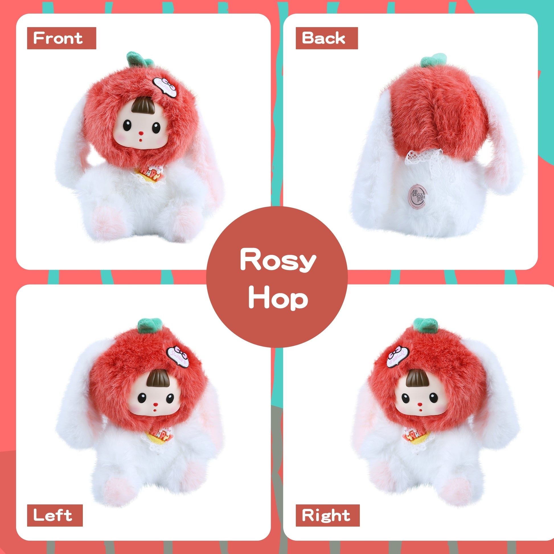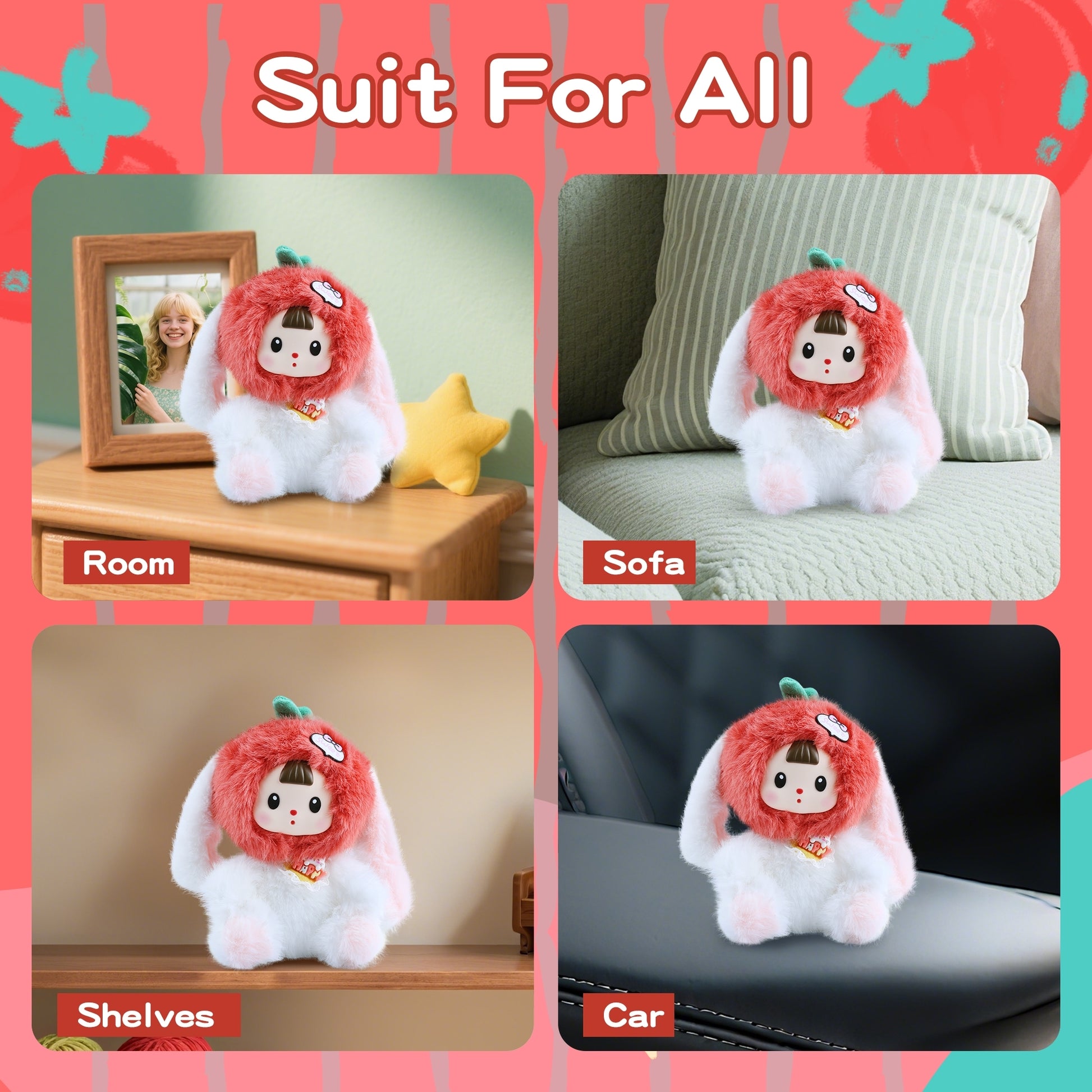 🌸 Adorable & Unique Design – Featuring a round tomato-shaped head, long bunny ears, and sweet accessories like a “Happy” clip and “Sweet” headband, this bunny plush adds a whimsical touch to any collection.