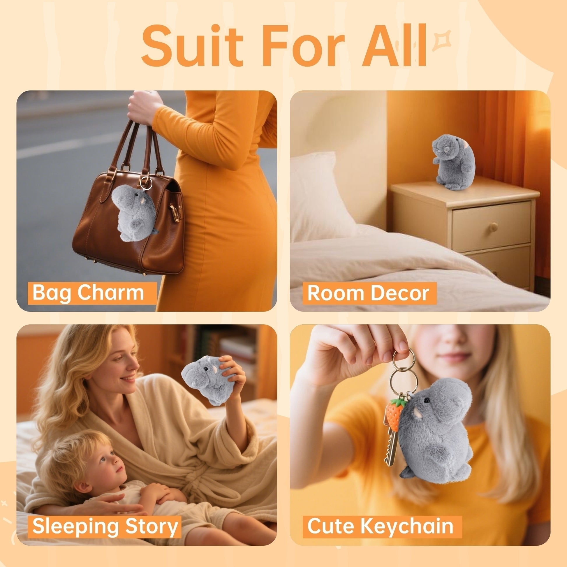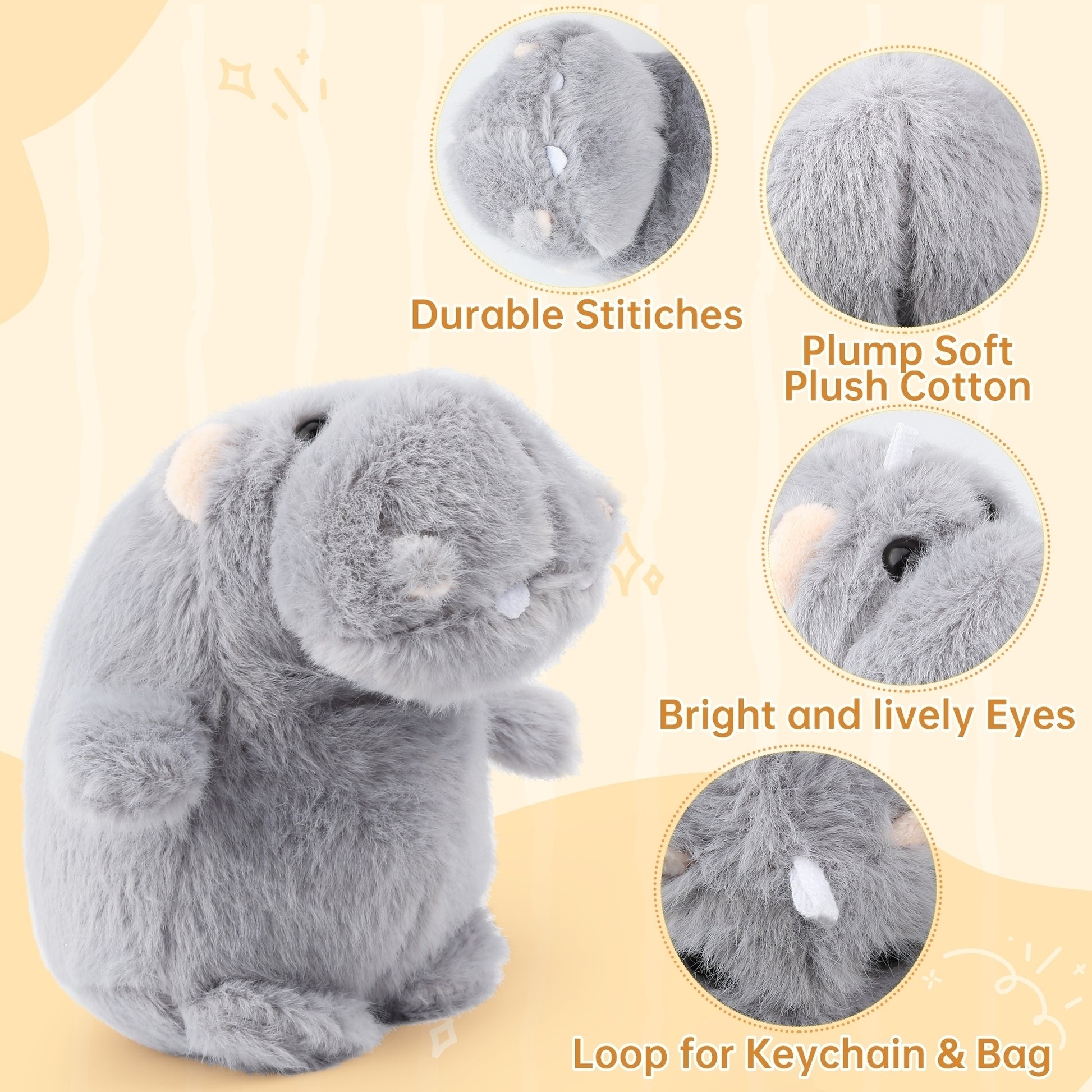 Mini Grey Hippo Plush – Small Soft Stuffed Animal Toy & Cute Bag Charm, Pocket-Size Chubby Hippopotamus Plushie Gift for Kids, Women & Girlfriends