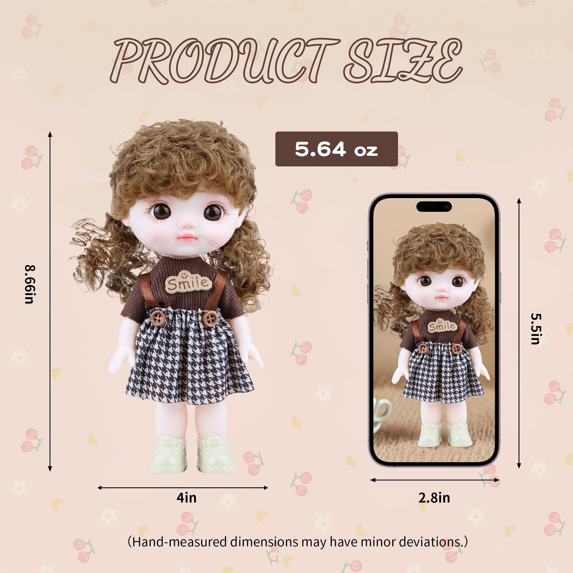 TaoTao Kawaii Vinyl Doll 8.6" – Plush Collectible with Double Ponytails, Strap Dress & Removable Outfits | Cute Emotional Support Gift for Kids, Teens & Collectors