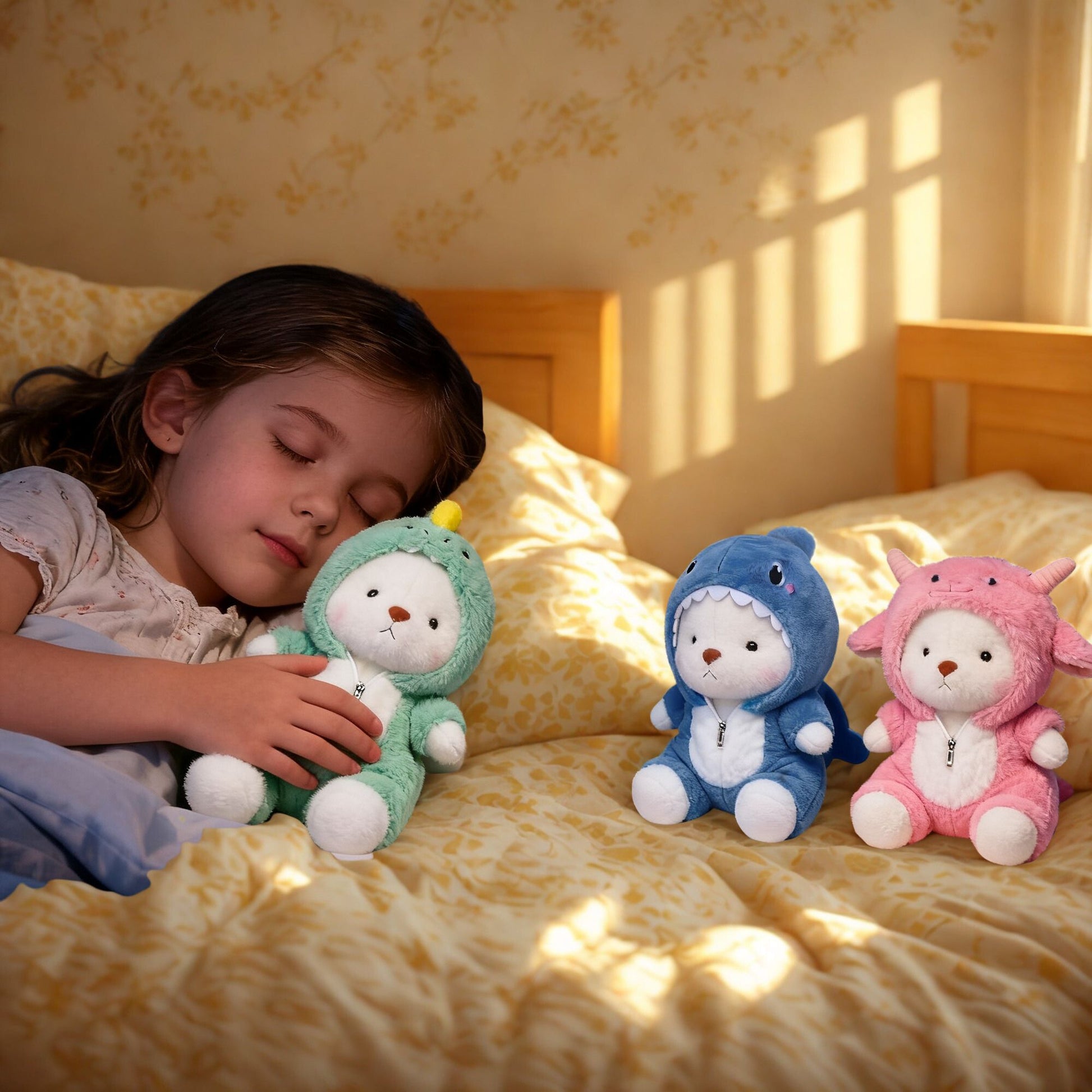 Dressed in a removable blue shark hoodie, this 13-inch soft plush teddy bear is made from premium short plush and filled with fluffy PP cotton for the perfect hug. Its movable legs let you pose it easily — ideal for play, cuddling, or cute home décor.