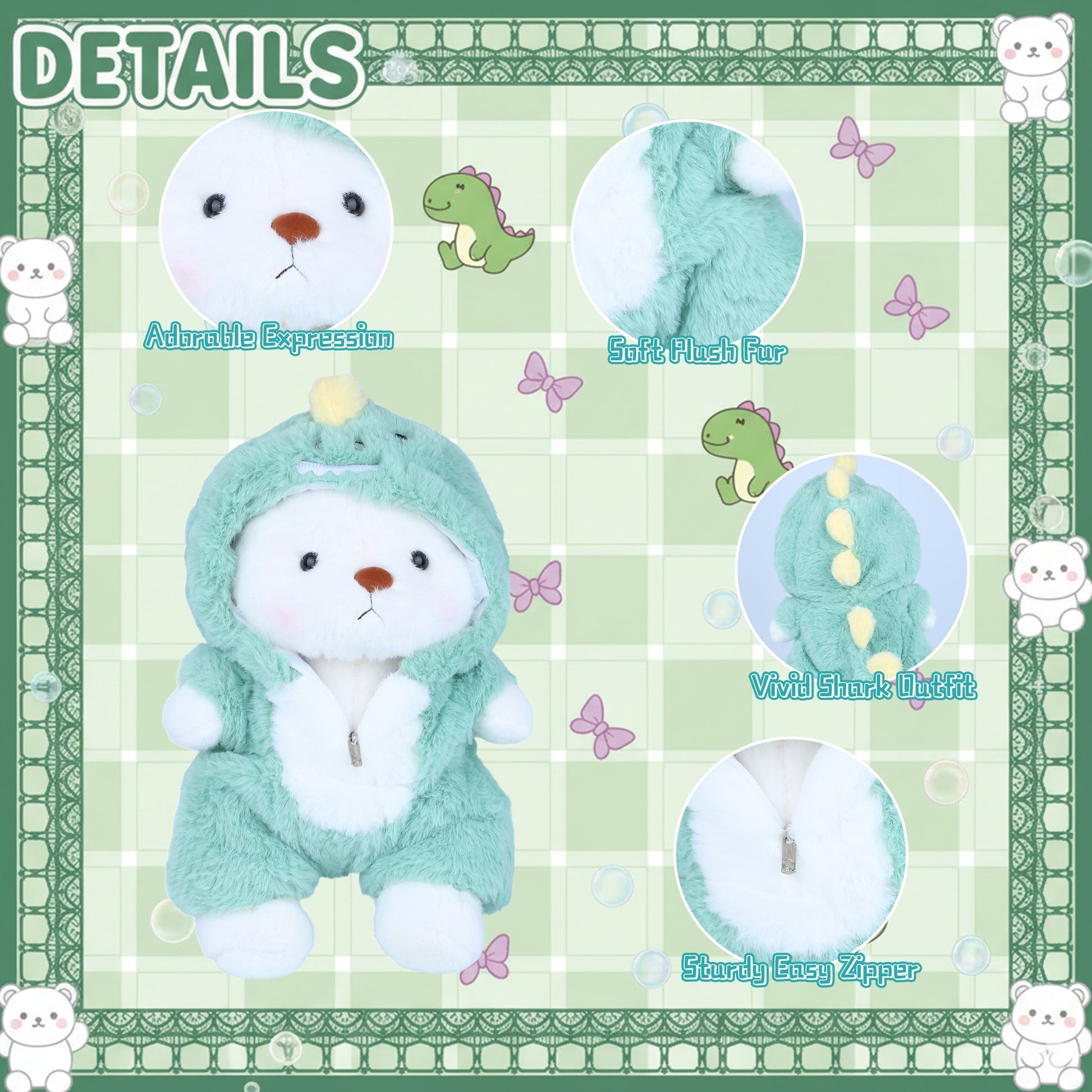 Teddy Bear Stuffed Animal with Removable Dinosaur Hoodie – 13'' Soft Plush Toy with Movable Legs, Cute Emotional Support Teddy Bear Gift for Kids, Girls & Adults