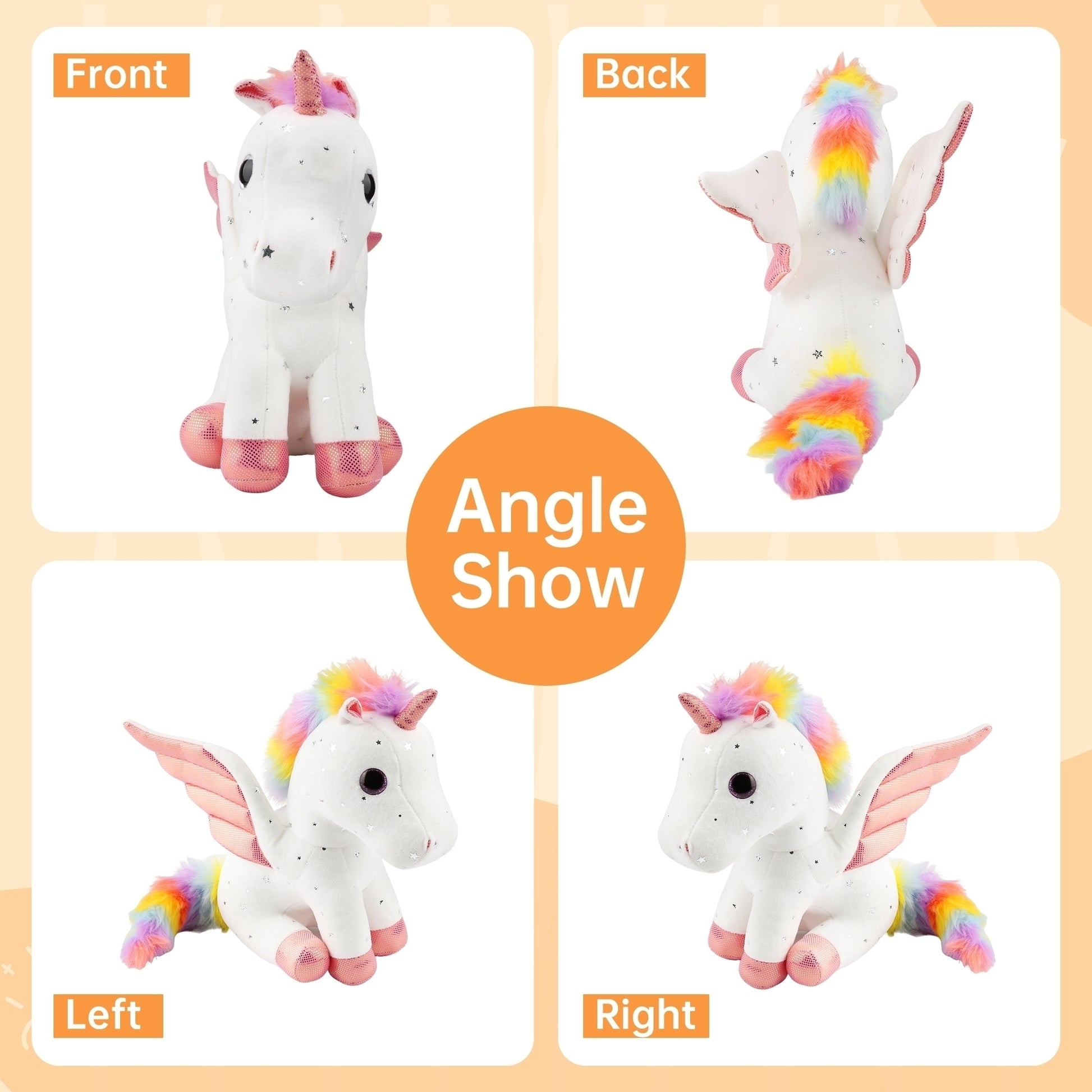 Unicorn Stuffed Animal Plush with Rainbow Mane & Sparkling Wings – 11.8'' Soft White Unicorn Plushie, Cute Hugging Pillow Gift for Kids, Girls, Women, Birthday, Christmas, Valentine